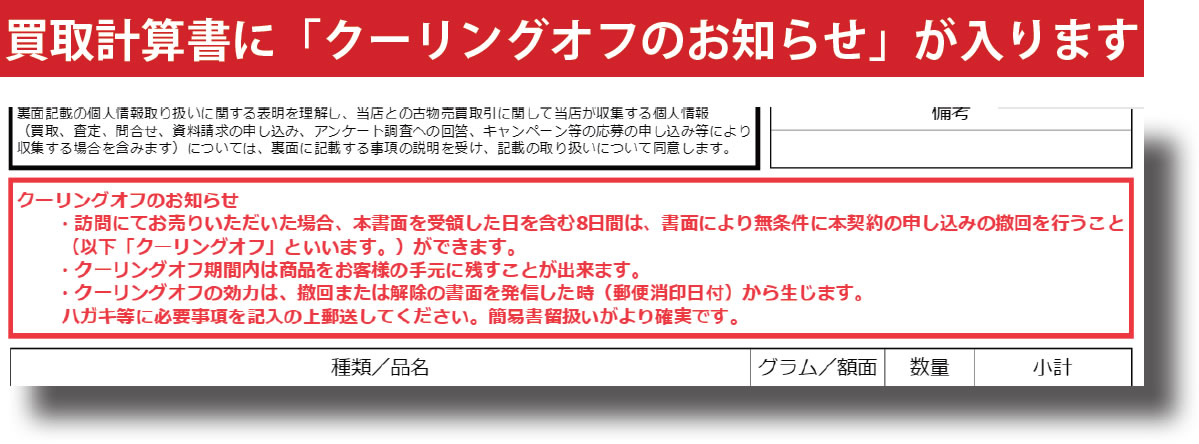 ② クーリングオフの記載がある手書きの買取伝票を利用する場合