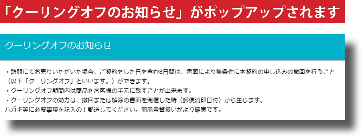 その後、「クーリングオフに関するお知らせの説明を受け、クーリングオフについて同意します。(必須)」のチェックボックスにチェックを入れて、承認サインをいただいてください。