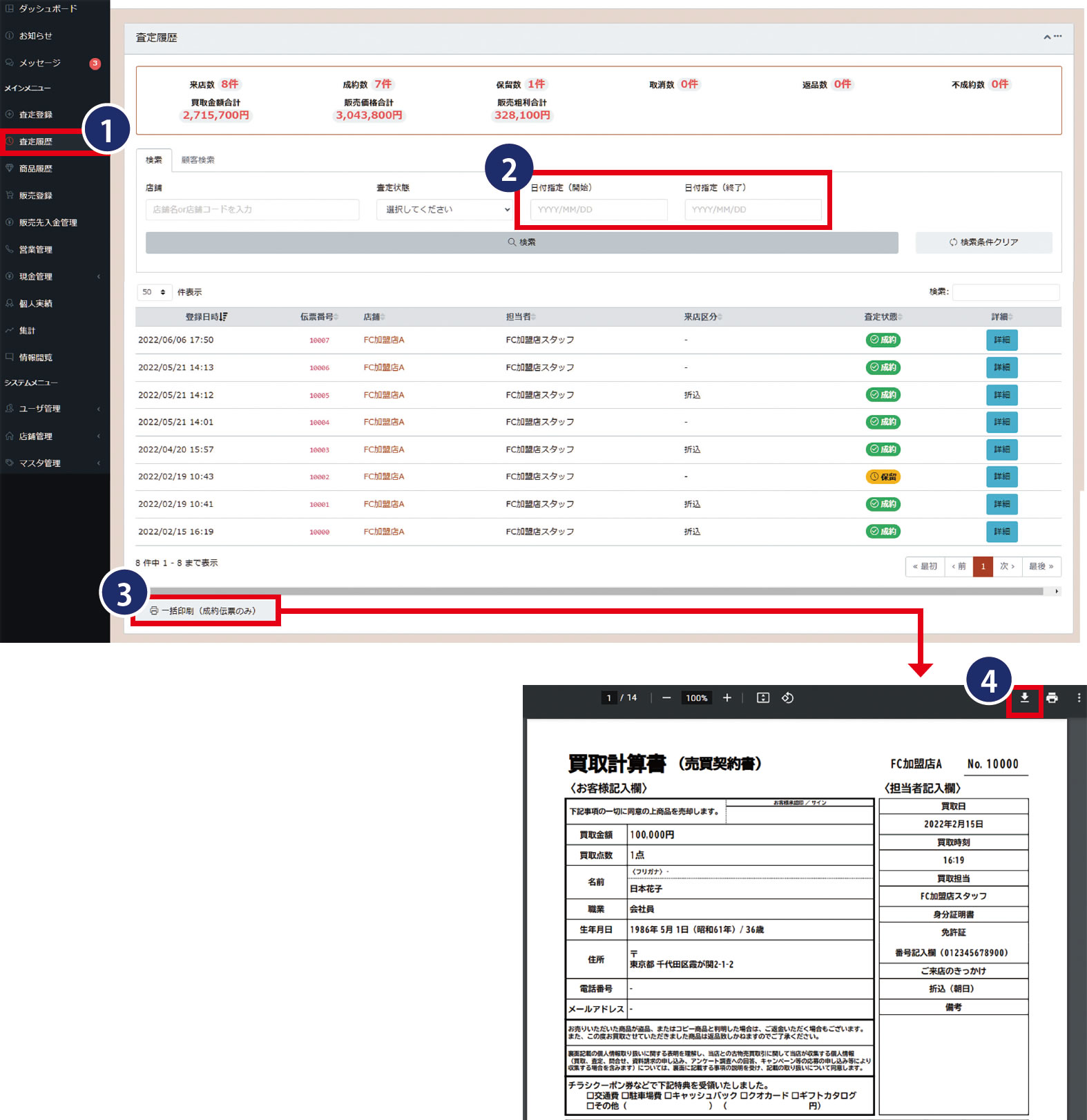 ※買取計算書の一括ダウンロードは、月に1 回はバックアップ用としてデータ保存をお願いいたします。