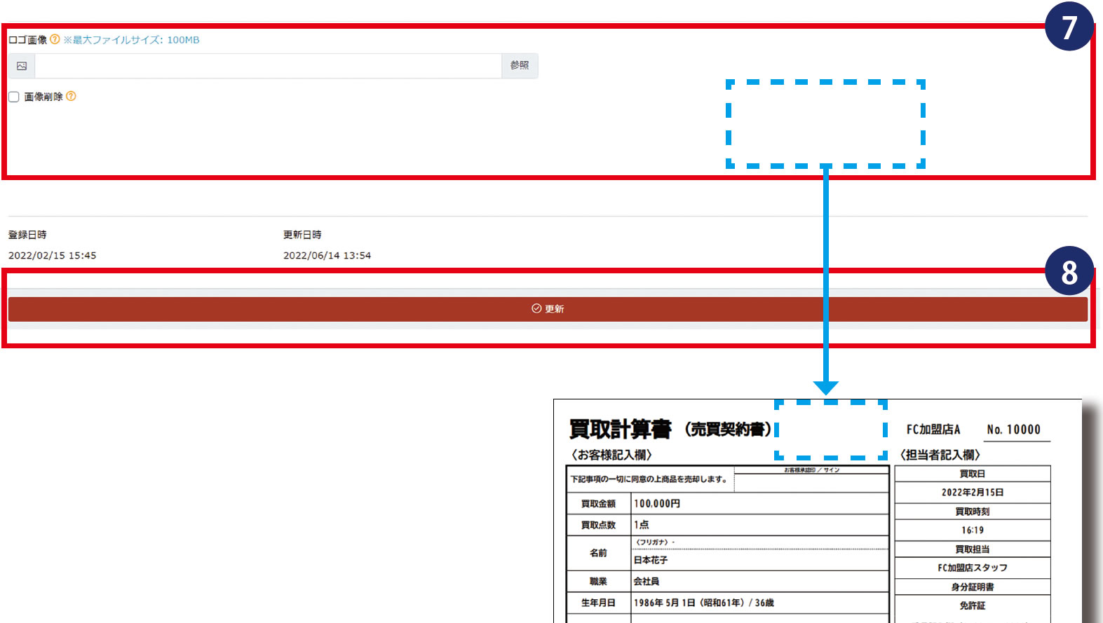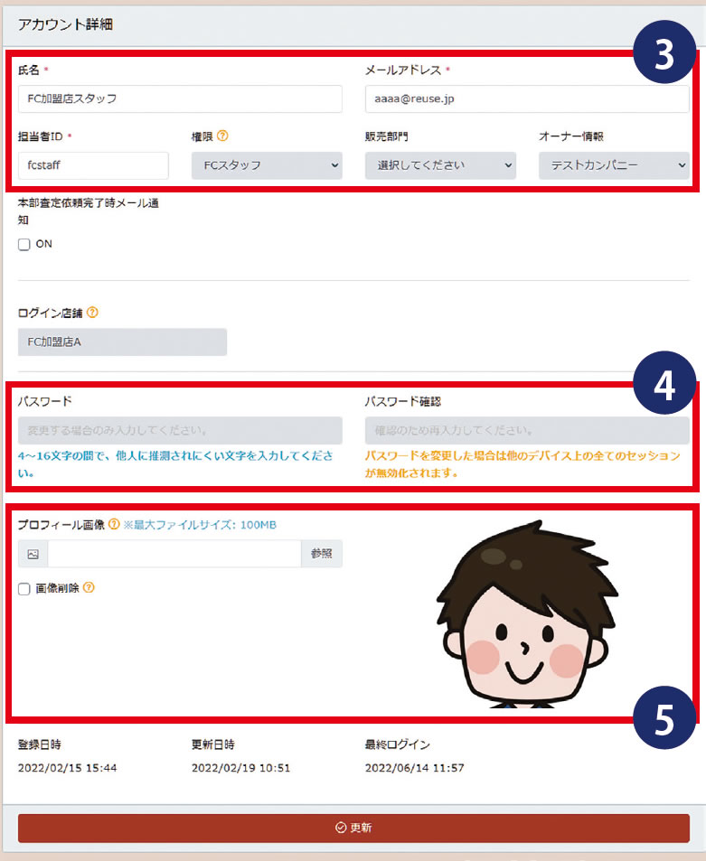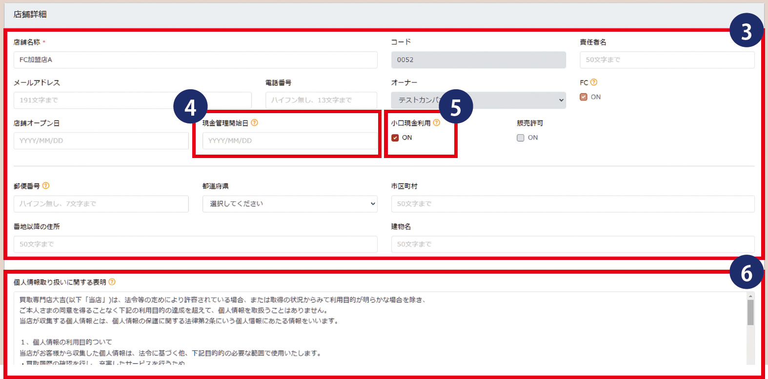 ※デフォルトでは、サンプルとして店舗名がFC本部の「株式会社エンパワー」が登録されていますので、必ず変更してください。