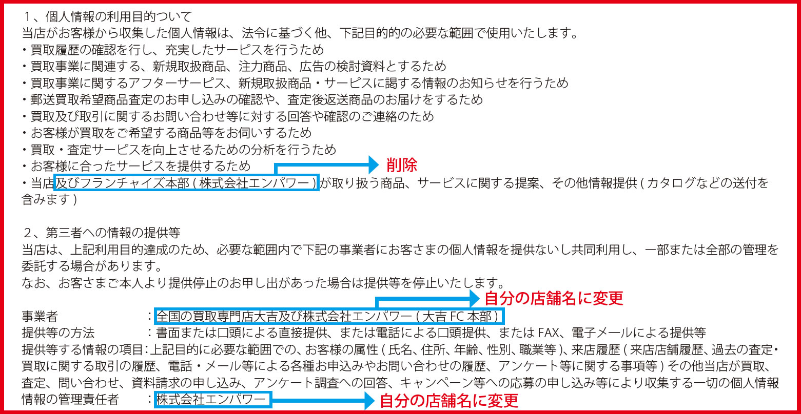 6個人情報取り扱いに関する表明文を編集します。