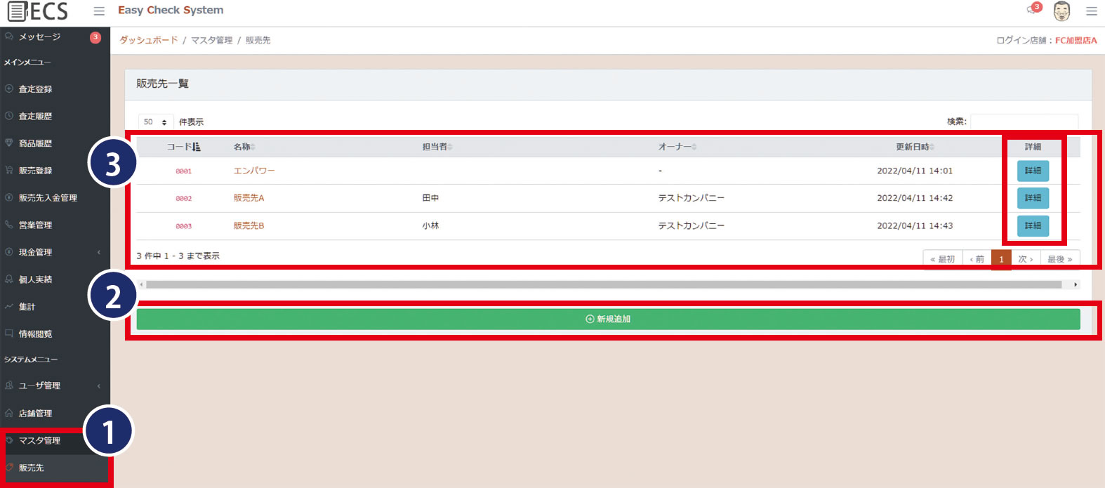 3店舗の詳細を登録します。