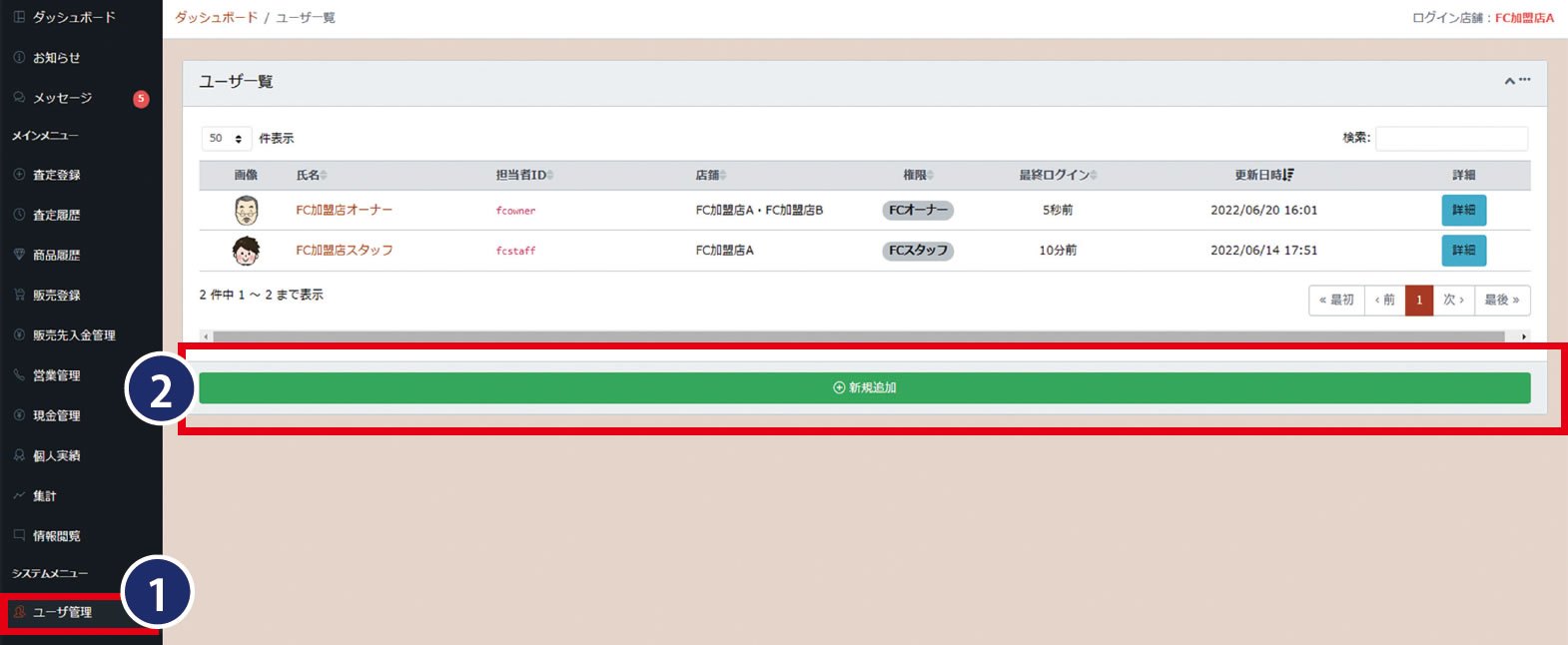 新規の販売先については、オーナー様権限で都度追加登録することで「販売先」として反映されます。